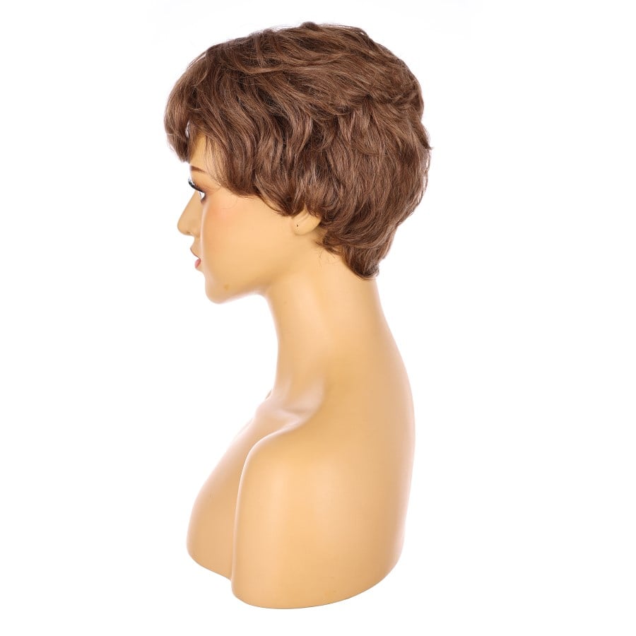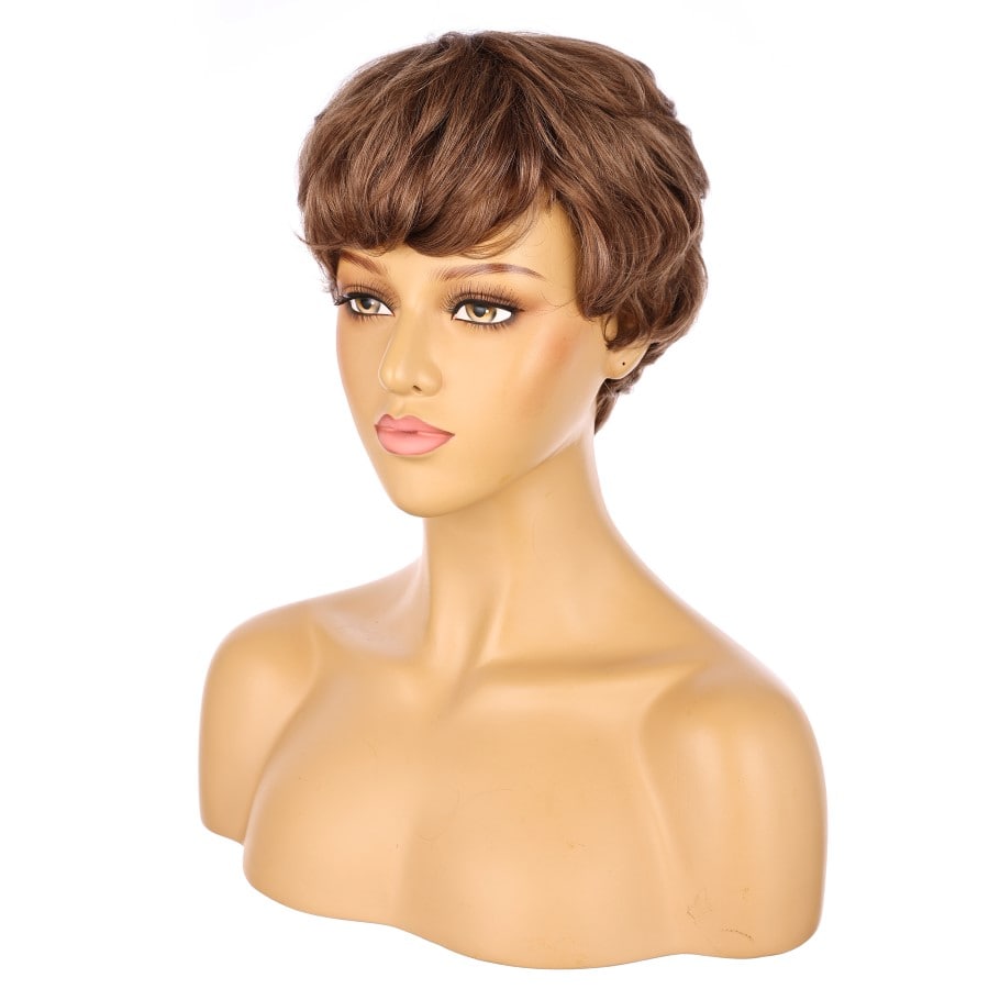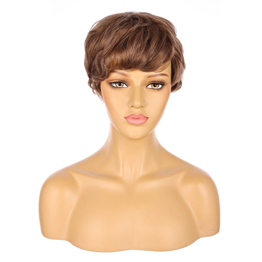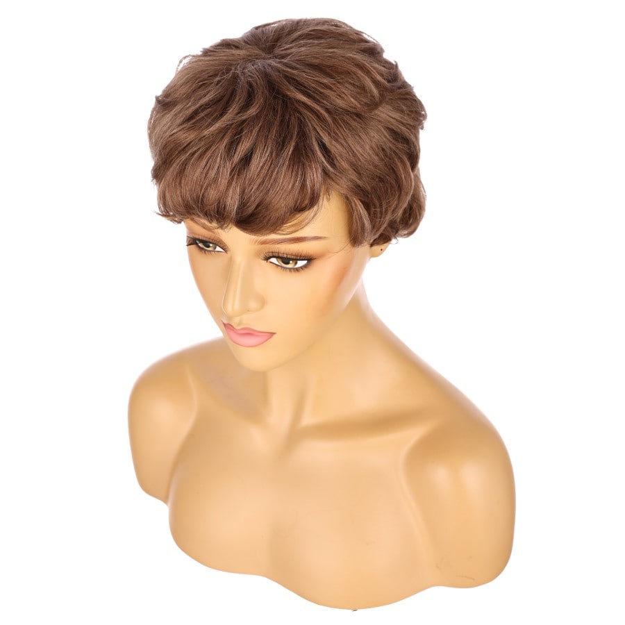 Peluca corta de 10" de color marrón chocolate, cabello humano Remy de 10 pulgadas con flequillo n.° 3-1