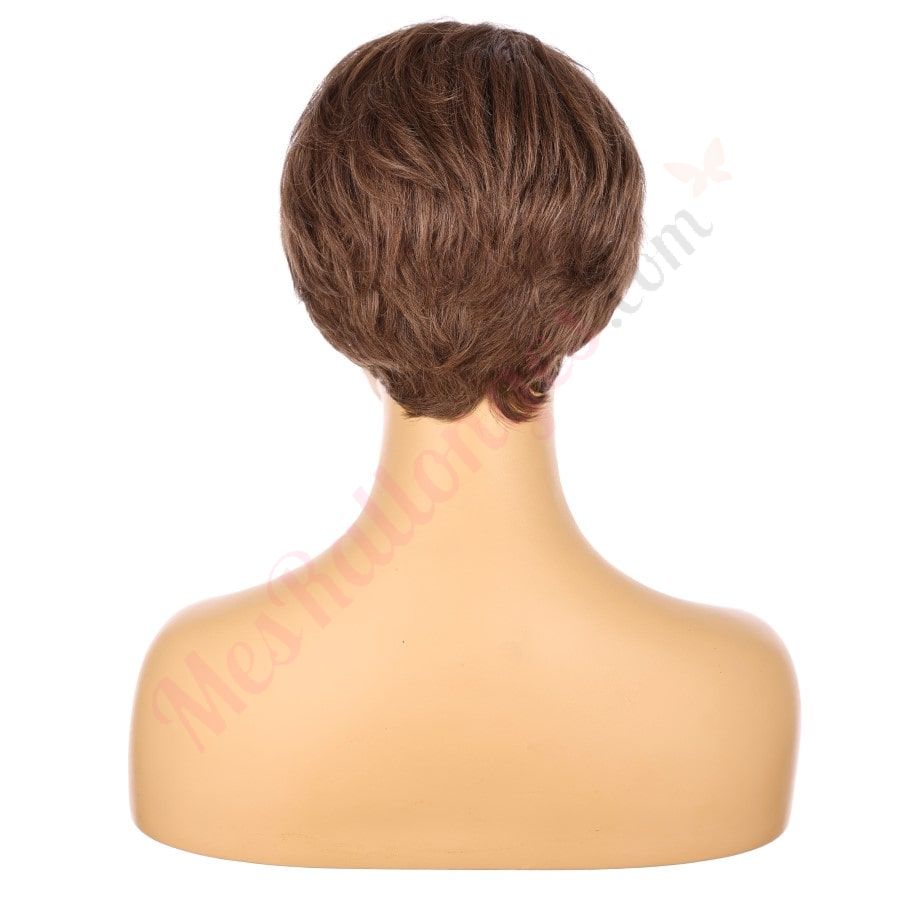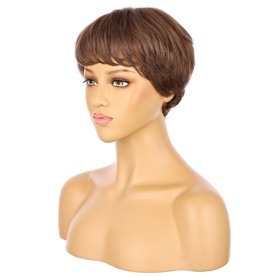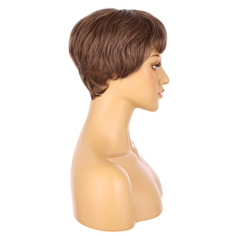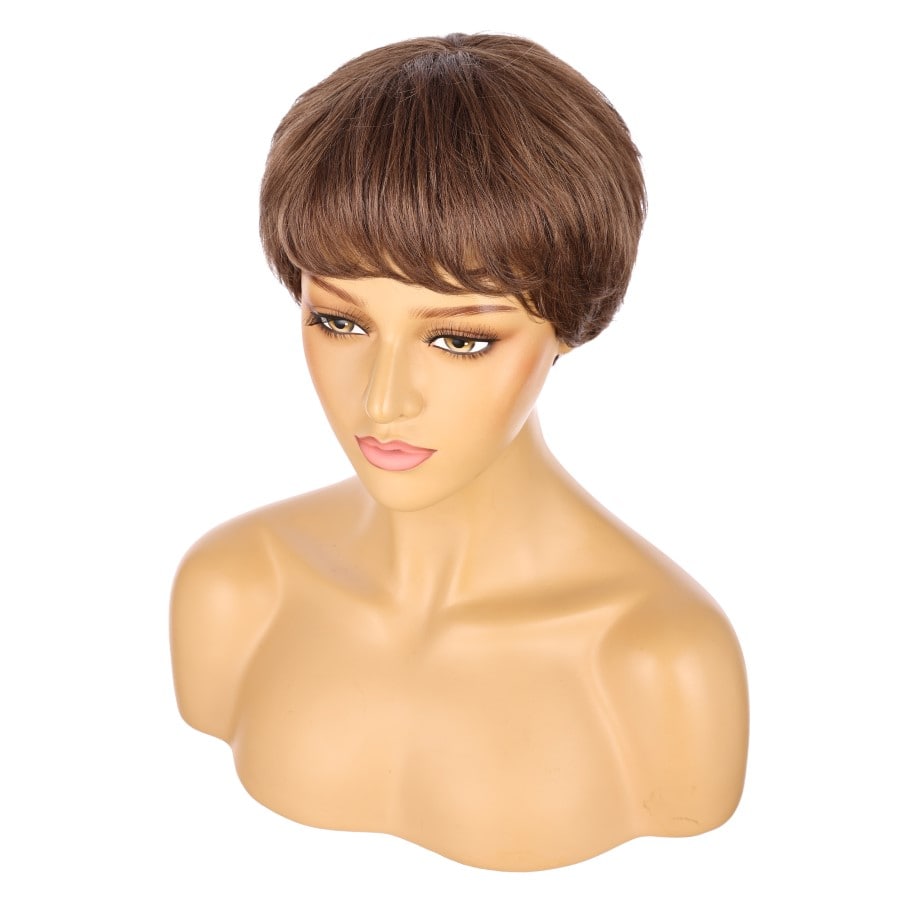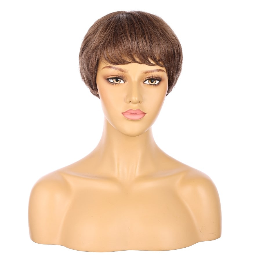 Peluca corta de 10" de color castaño medio, cabello humano Remy de 10 pulgadas con flequillo, n.° TD-049