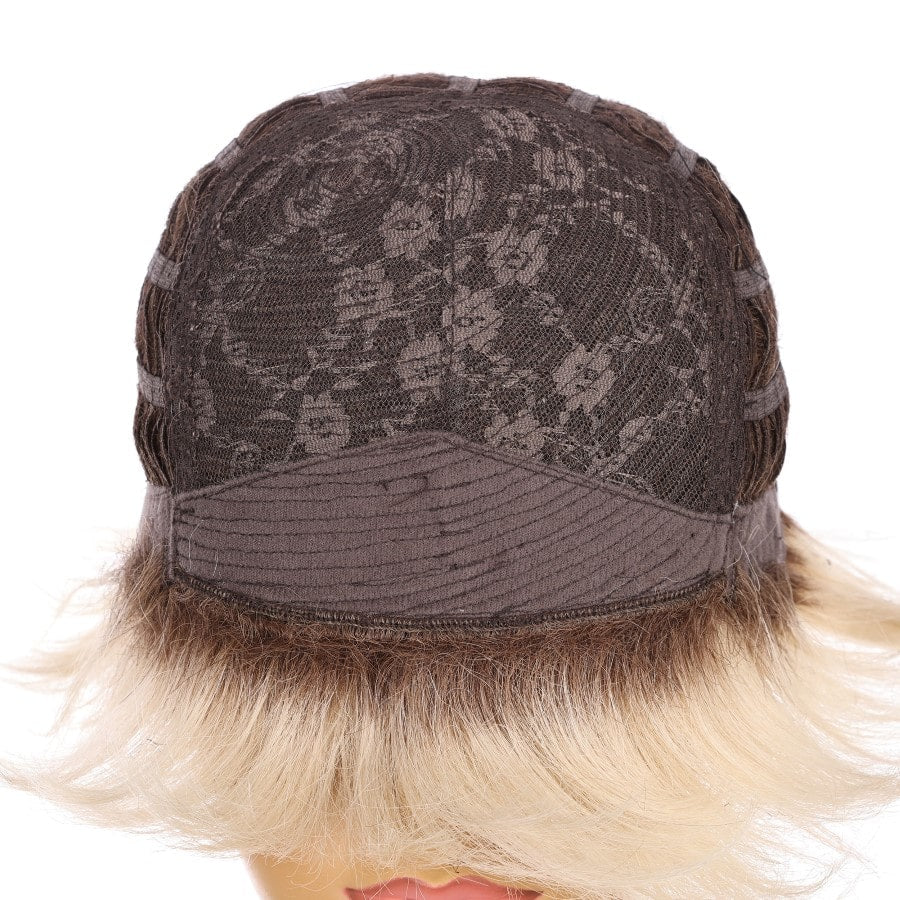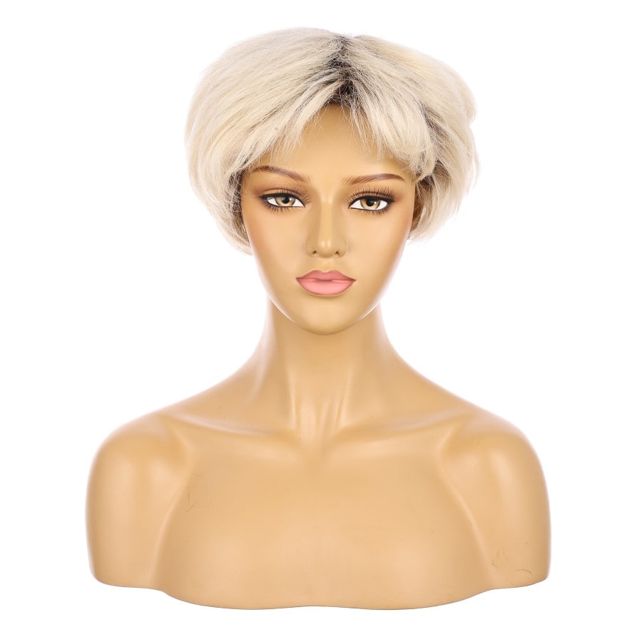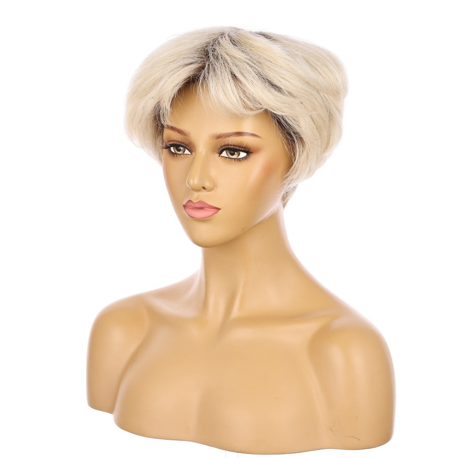 Peluca corta de 10" de color rubio ceniza con raíces, cabello humano Remy de 10 pulgadas con flequillo, n.° TD-Z088