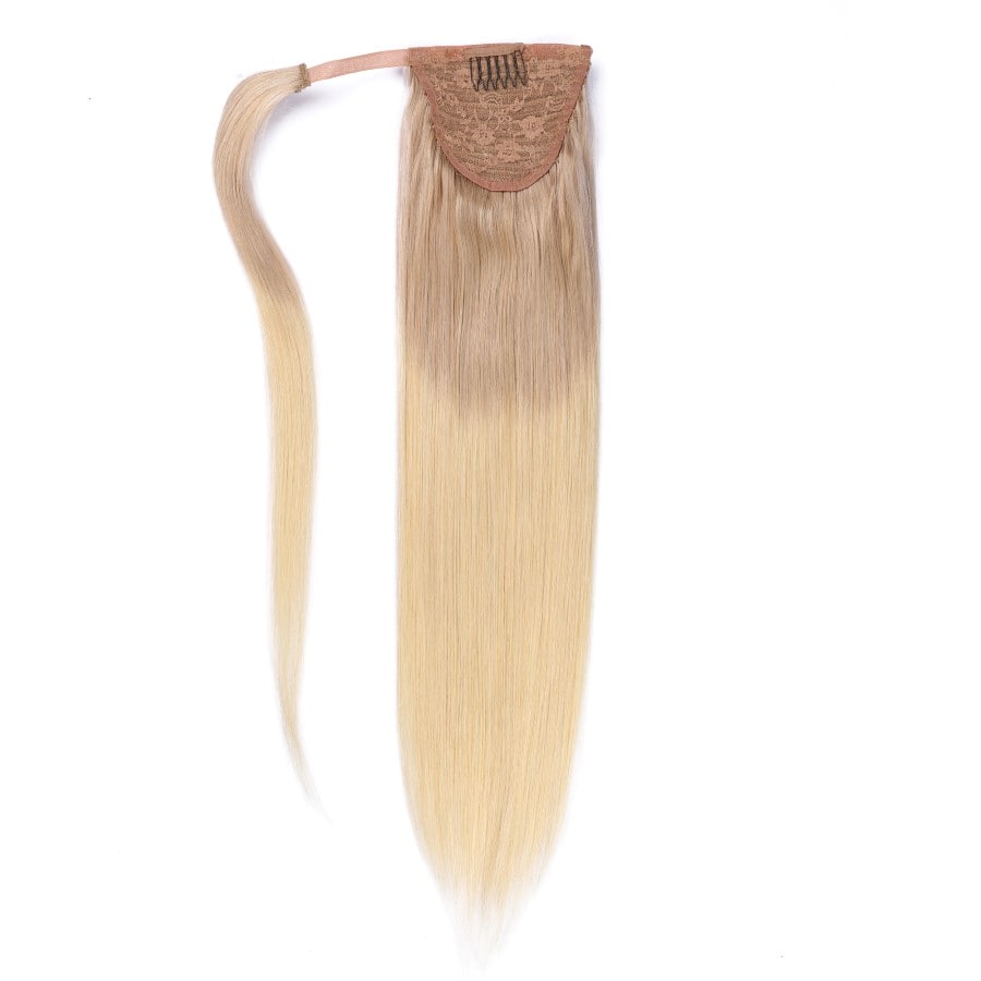 Extensions de cheveux queue de cheval blond cendré ombré - 100 % vrais cheveux humains Remy