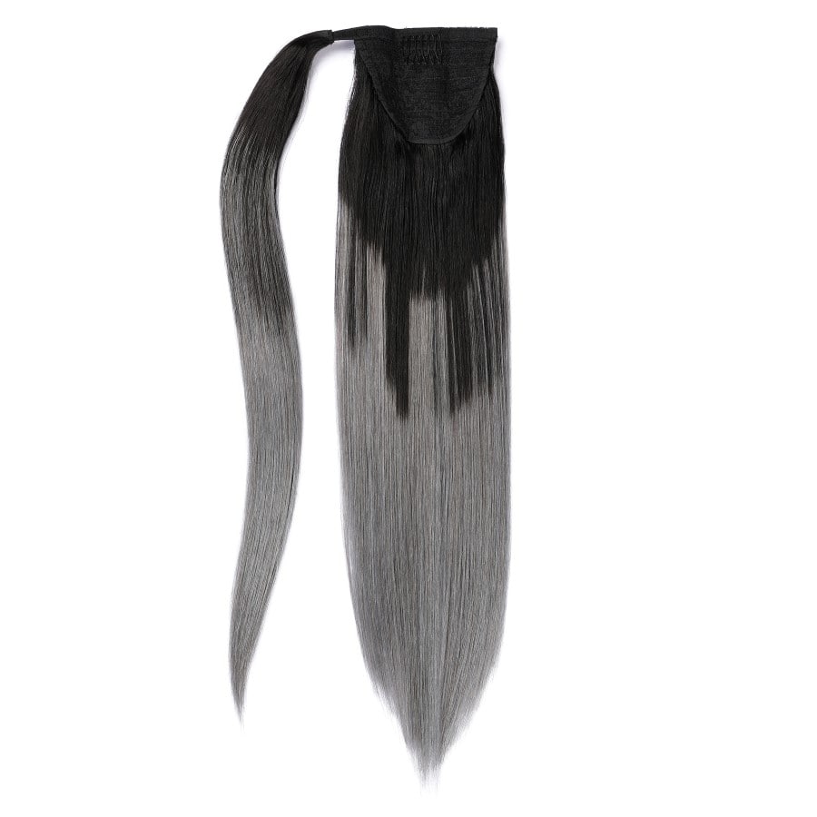 Extensions de cheveux queue de cheval gris ombré - 100 % vrais cheveux humains Remy