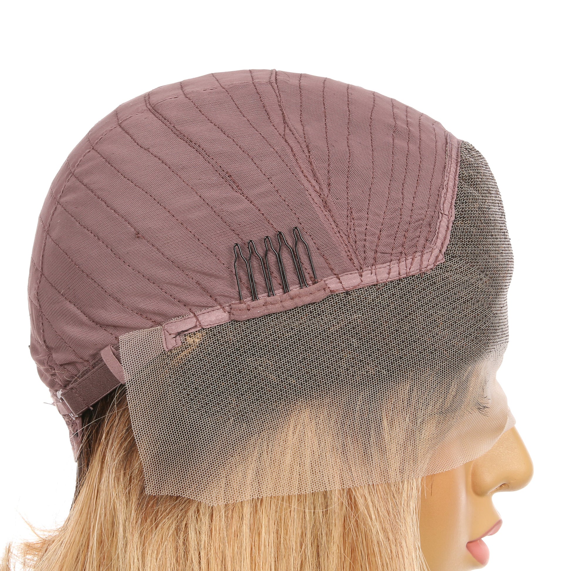 10" # 1BT/27 Ombre Fraise Blonde Remy Cheveux Humains Perruque Courte 10 pouces