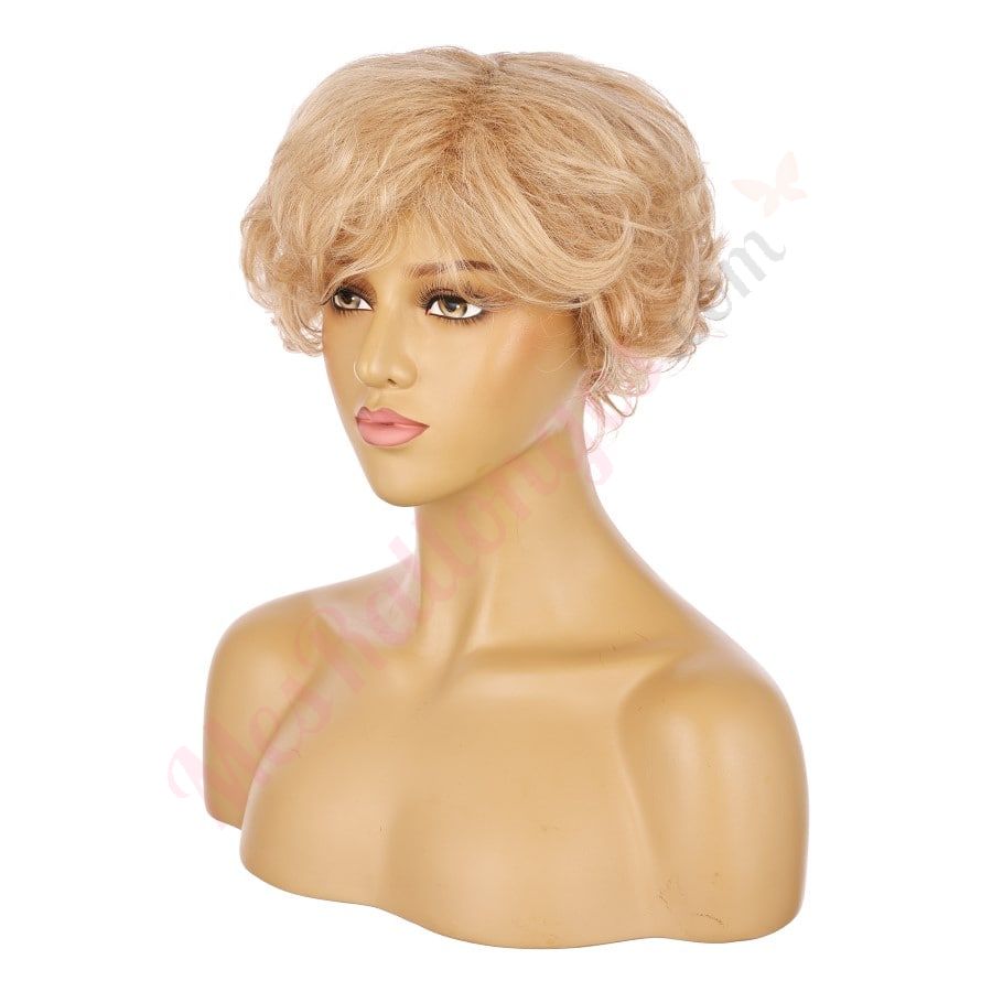Perruque courte blonde dorée de 10 pouces, cheveux humains Remy avec frange # 4-3