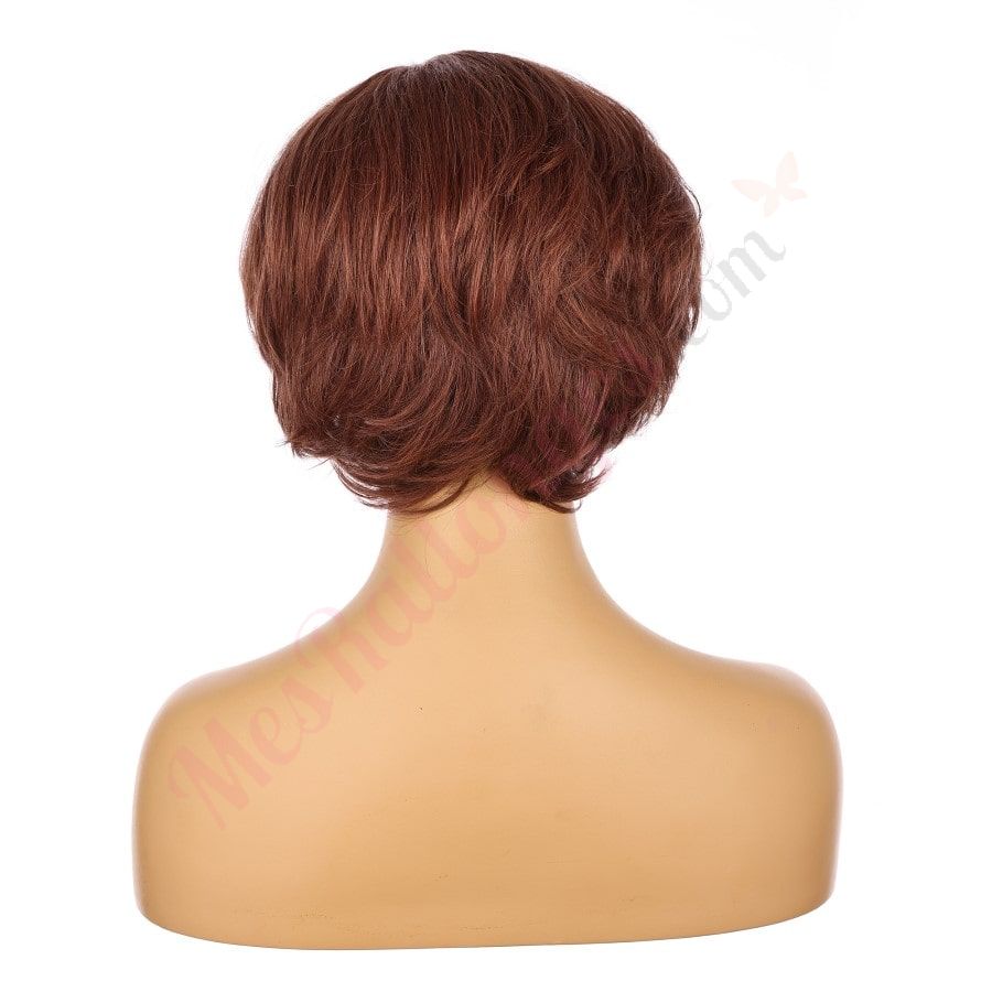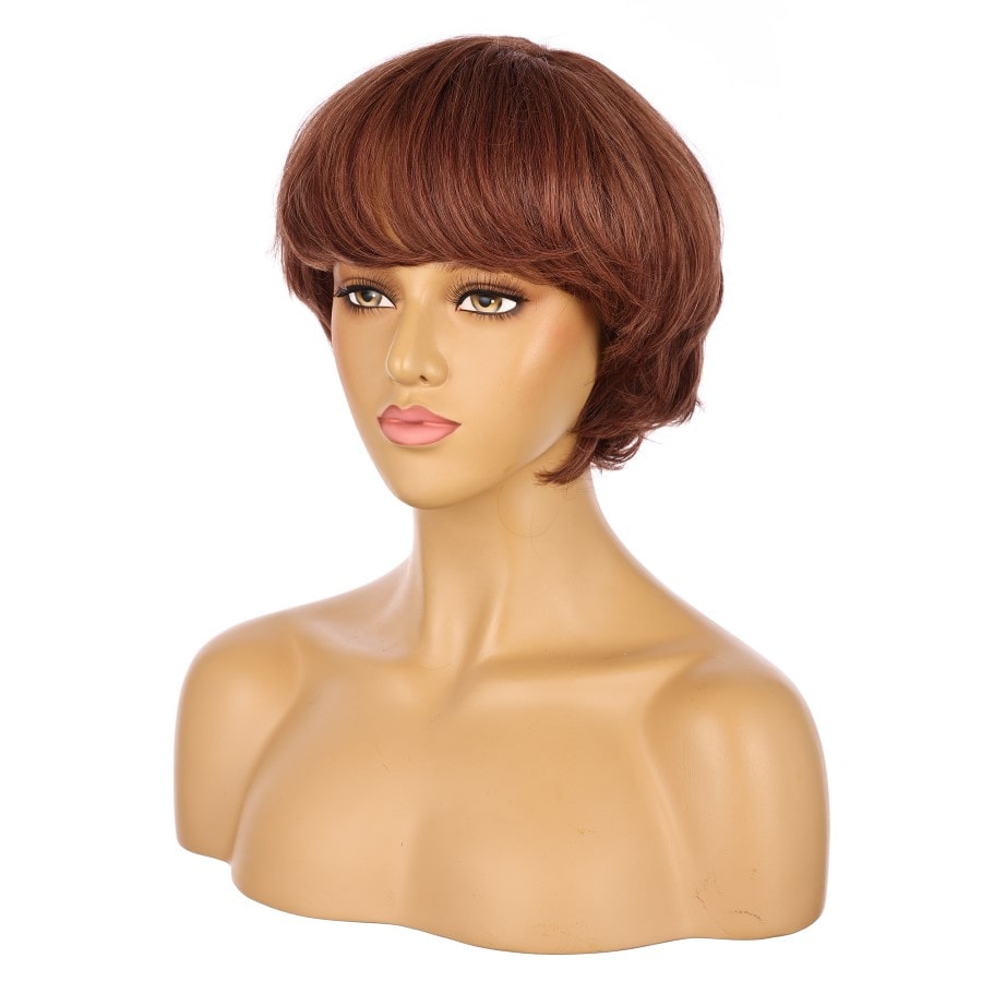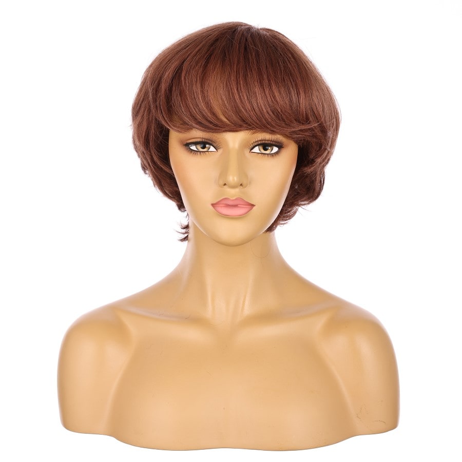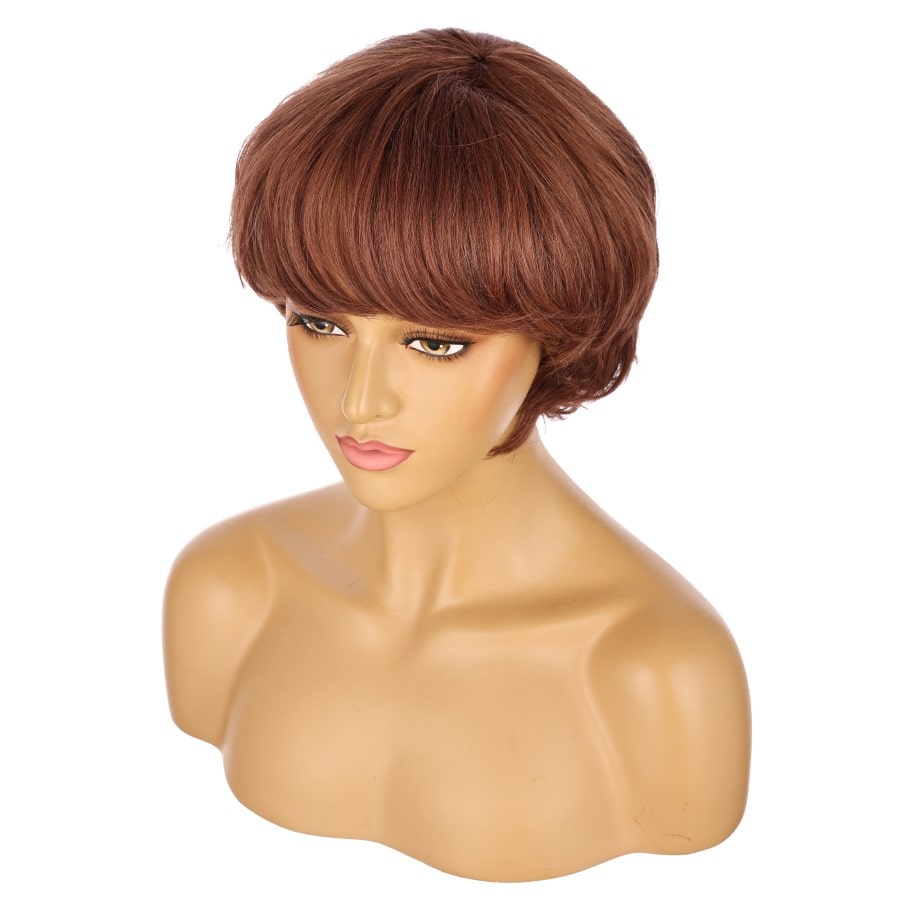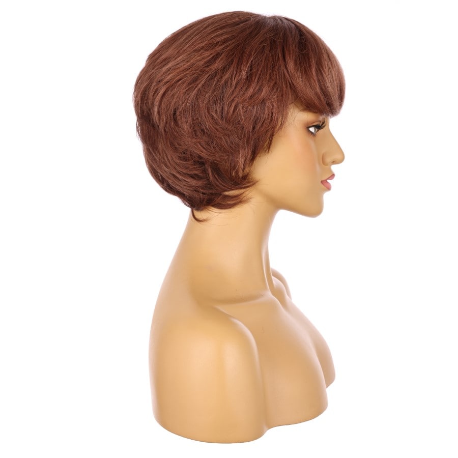 Perruque courte Auburn 10 pouces, cheveux humains Remy avec frange # 7-3