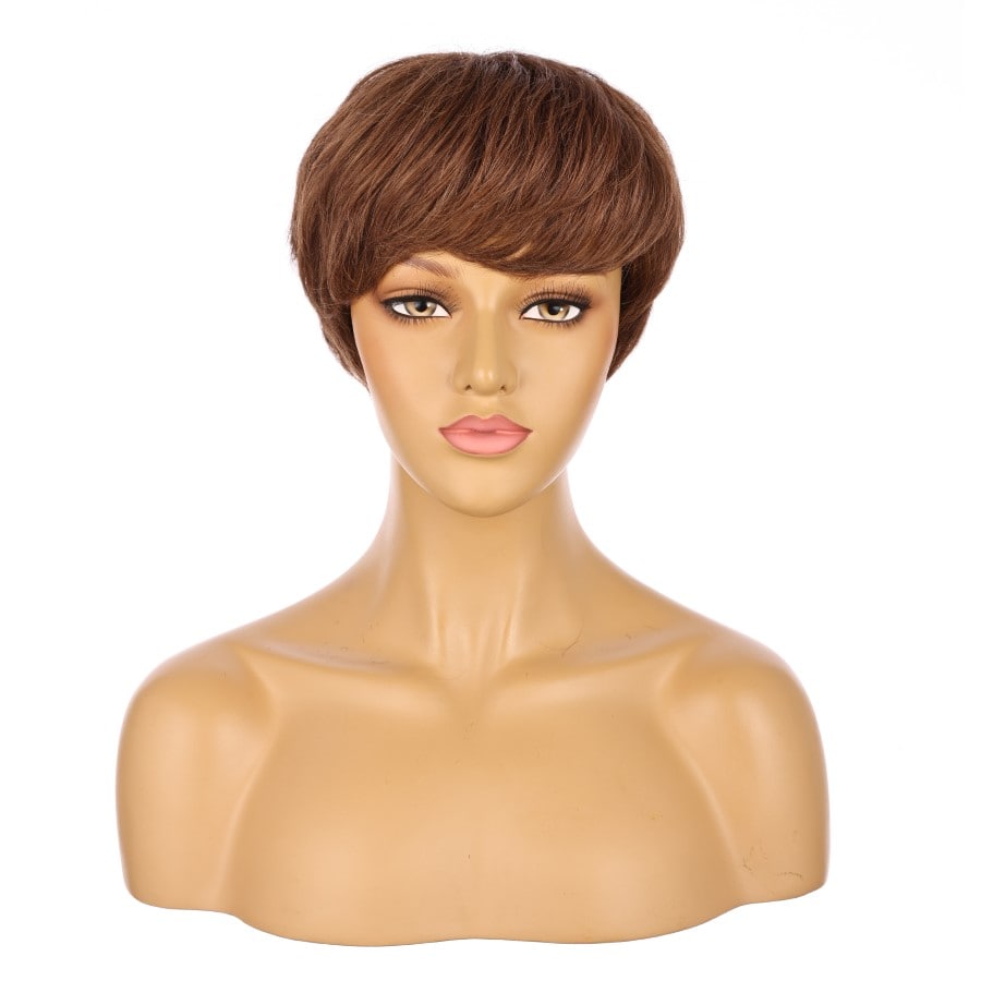 Perruque courte Auburn 10 pouces 10 pouces cheveux humains Remy avec bang # 9-2