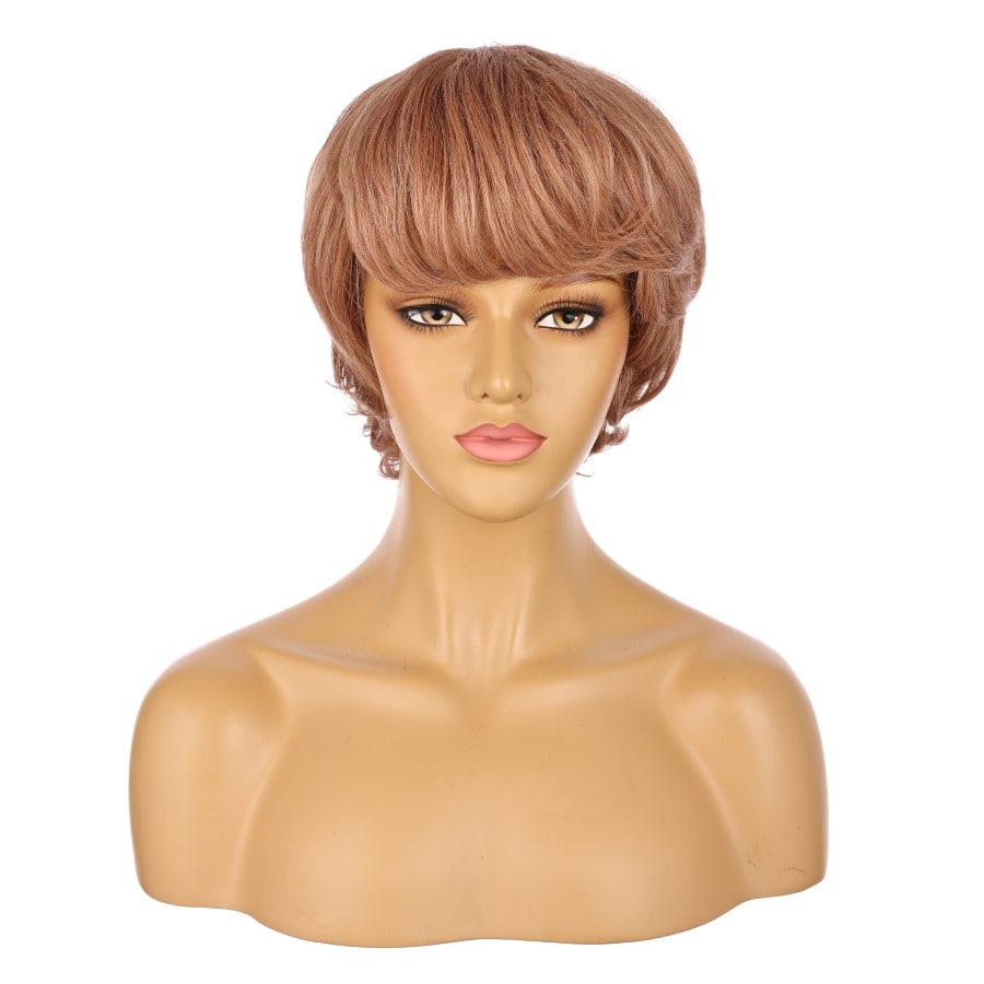 Perruque courte marron doré de 10 pouces, cheveux humains Remy avec frange, 10 pouces, # numh1912050