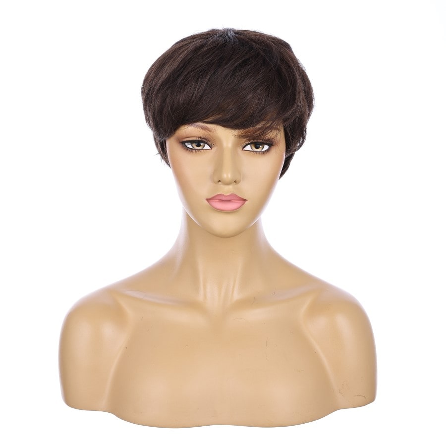 Perruque courte marron moka de 10 pouces, cheveux humains Remy avec frange, 10 pouces, # numh200333
